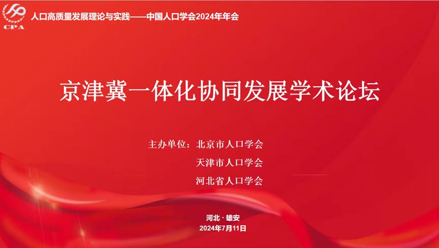 2024年7月11日,中国人口学会2024年年会分论坛“京津冀一体化协同发展”在河北省雄安新区顺利召开。本次学术论坛由北京市人口学会发起、联合天津市人口学会和河北省人口学会共同主办。