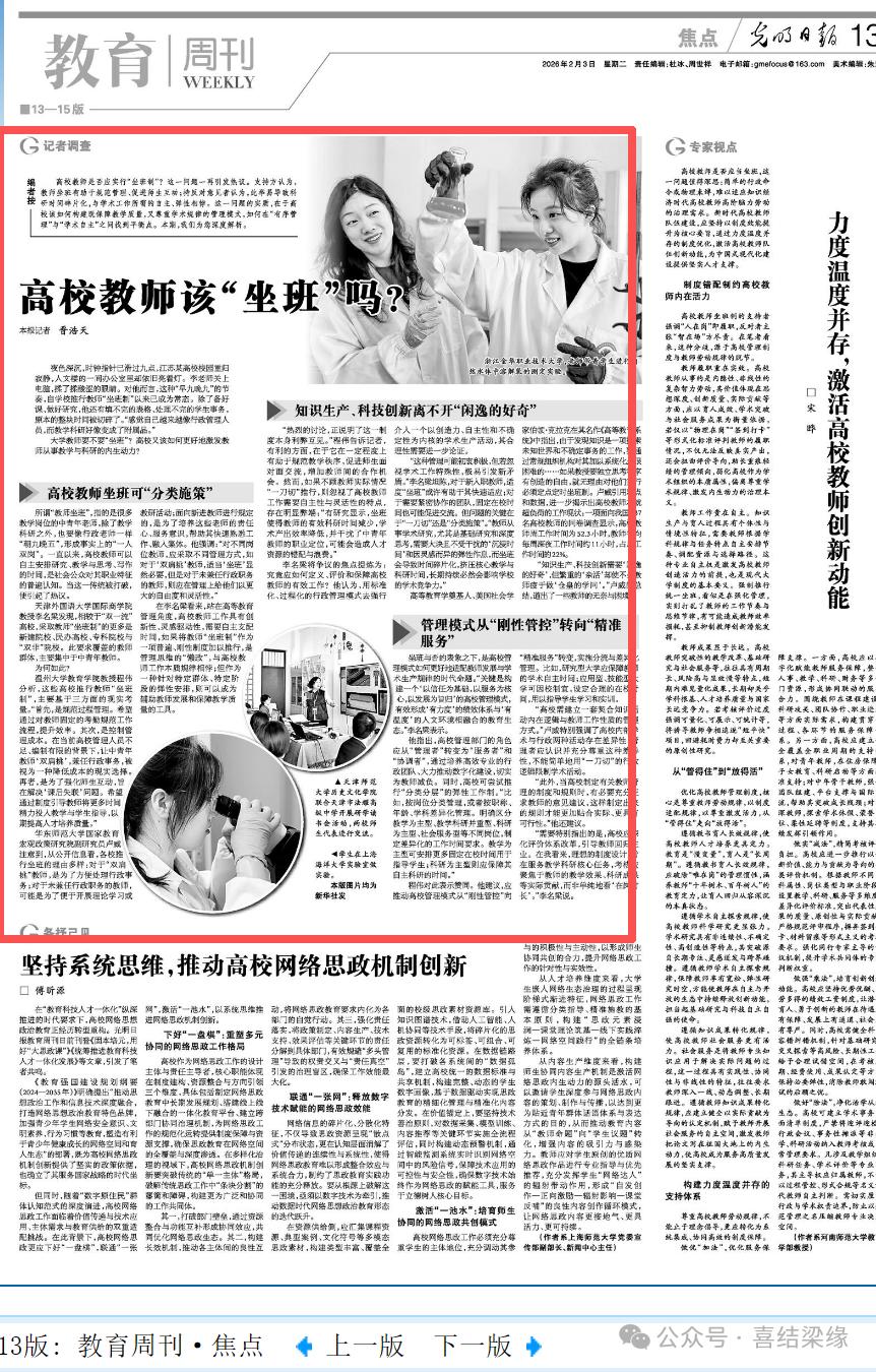 《光明日报》采访我院李名梁教授谈高校教师坐班制